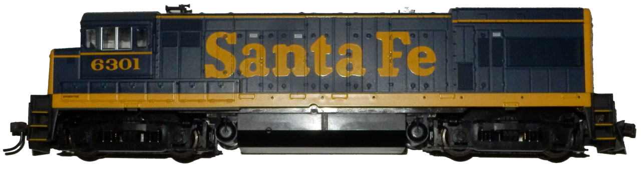 nákladní těžkotonážní dieselová lokomotiva SD40.6301 Santa FE. Spřazeny 3-5 tahaly nákladní soupravy přes Skalisté hory. Výrobce modelu Atlas. Měla přípravu na DCC
