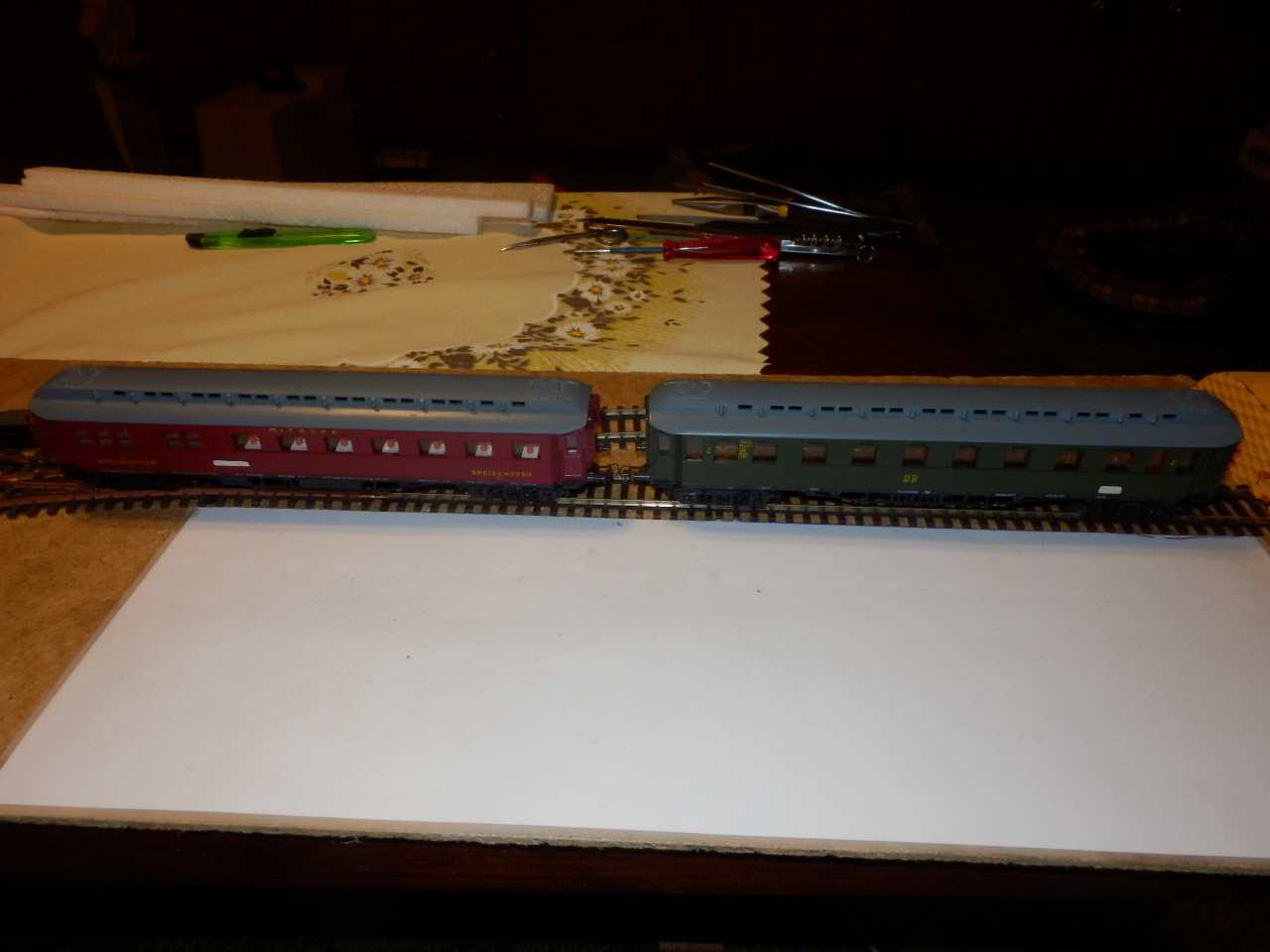 do přes 50 let starých rychlíkových vagónků Old-Timer vmontované led osvětlení a osazení lidičkami